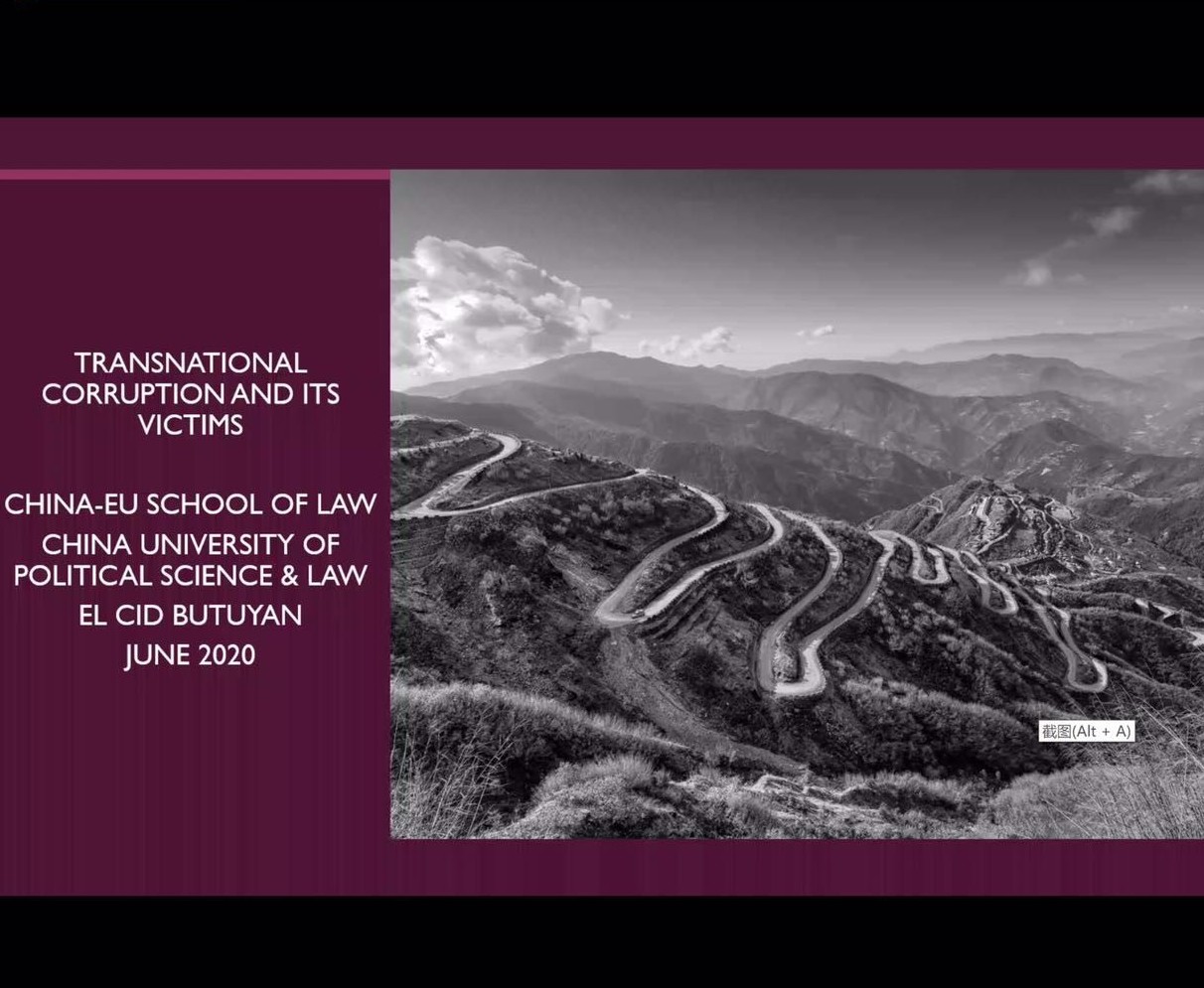 2020年6月24日,中欧法学院约160名学生参加了一场以“跨国腐败及其受害者”为主题的专题讲座。讲座由El Cid Butuyan教授通过腾讯会议进行,中欧法学院欧方执行院长Monty Silley担任本次讲座的主持人。El Cid Butuyan先生曾是夏威夷大学的客座教授和哈佛法学院的讲师,是诚信、欺诈和腐败问题的世界顶尖专家之一。他曾在世界银行、亚洲基础设施投资银行等国际组织担任高级职位,目前就职于世界主要国际机构的环保部门。Butuyuan... >>>