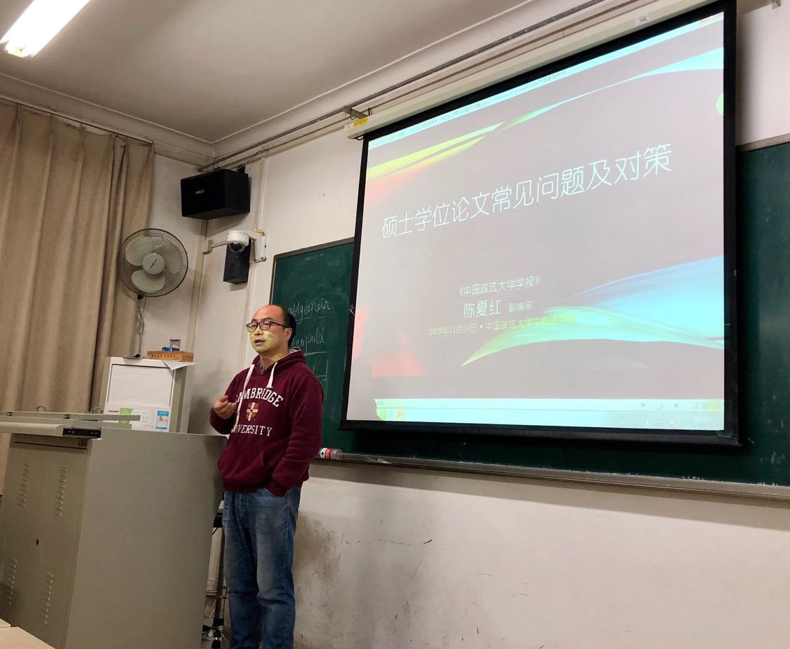 2020年11月24日晚,中欧法学院“硕士学位论文写作系列讲座”第二讲在中国政法大学海淀校区教学楼205教室进行。中国政法大学学报副编审陈夏红老师受邀来到中欧法学院,为2021届硕士毕业生主讲“硕士学位论文常见问题及对策”。本次讲座主要对硕士学位论文中问题意识差、介绍性内容偏多、文献不够权威、论证不强等常见问题展开深入分析并提出相关建议。讲座开始,陈老师便提出“学术无禁区,写作有纪律”的观点。学术本身就有很... >>>