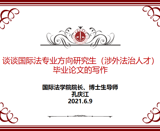 2021年6月9日晚,中欧法学院“硕士学位论文指导与写作课程”第4讲在中国政法大学昌平校区明法楼305教室举行。国际法学院院长孔庆江教授受邀来到中欧法学院,分享自己的研究经验、论文写作心得,为包括国际法方向在内的中欧学子提供宝贵的毕业论文写作建议。本次课程由中欧法学院赵天书博士主持。课程开始,孔教授谈及我国在涉外法治人才培养上的缺口,由于培养课程的短板、实务培训的缺位、跨文化交流环境的缺失,涉外法治人... >>>
