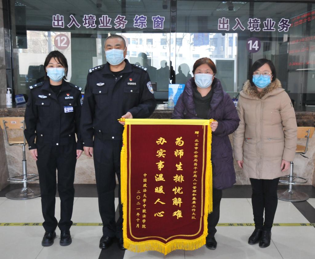 2021年12月2日下午,中欧法学院党委副书记尹晓华、教务办公室主任马安娜到北京市公安局昌平分局出入境接待大厅,为昌平分局人口管理和基层工作大队贴心为中欧法学院师生办实事,赠送锦旗和感谢信表示感谢,并进行座谈交流。人口管理和基层工作大队政委沈忠岭接受锦旗。人口管理和基层工作大队副大队长赵永志、人口管理和基层工作大队中队长代海涛、民警张美玲参加座谈会。受疫情影响,国家移民管理局对非必要、非紧急出境事由,... >>>