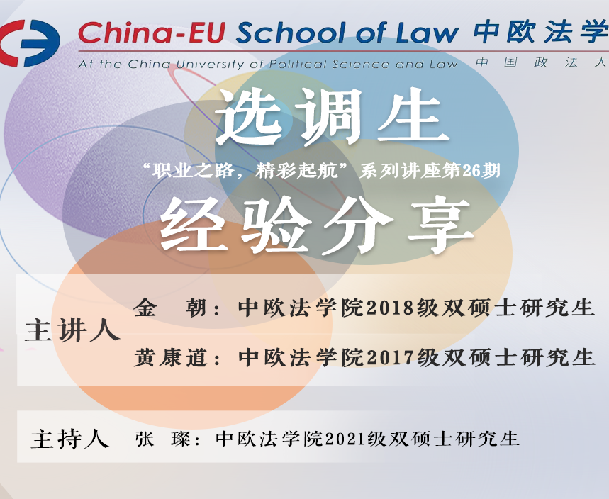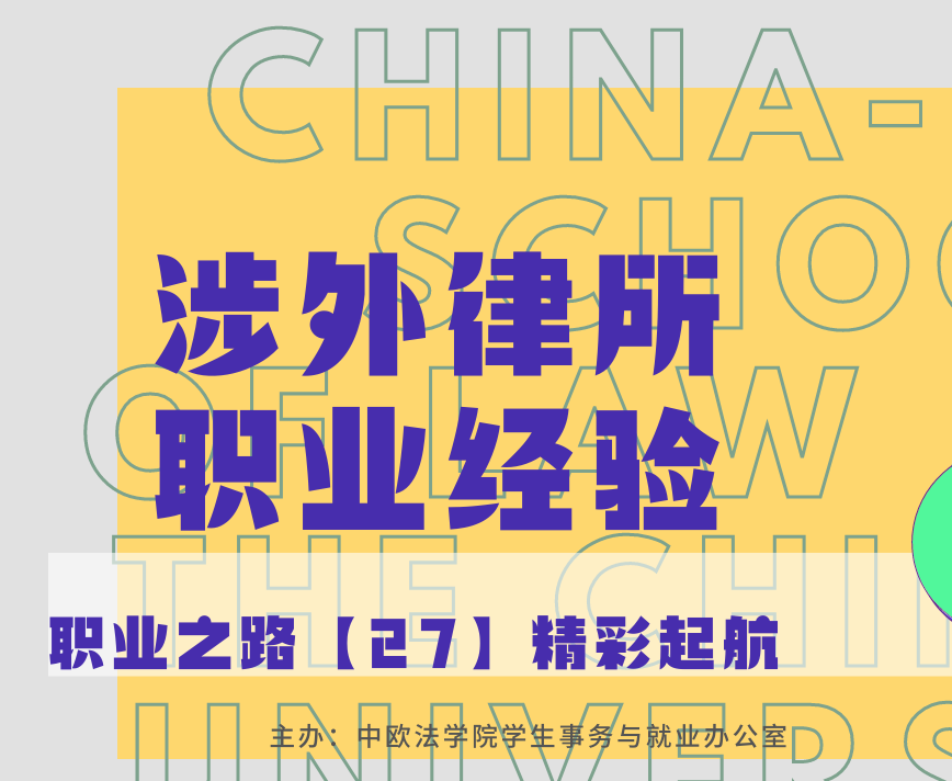 为贯彻落实习近平总书记考察我校重要讲话精神,加强在校学生与法治实际工作者之间的交流,着力激发当代法学青年树立正确就业观念、坚定远大理想信念,勇担时代责任的奋斗精神,2021年12月12日,中欧法学院学生事务与就业办公室线上举办以“涉外律师职业经验分享”为主题的“职业之路·精彩起航”系列讲座第27期,共计155人次聆听学习。(黄敏池校友)本次分享会邀请到中欧法学院2009级校友黄敏池。黄敏池校友2012年从中欧法学院... >>>