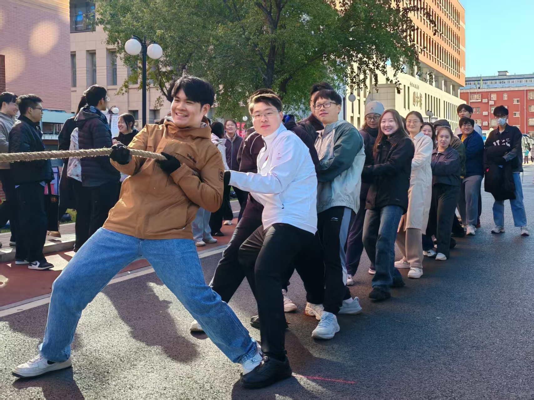 午后寒风仍在,集体项目却让赛场更火热。中欧法学院队员在集体跳大绳、单足跳接力、集体拔河中,靠默契与坚持展现团队风采。集体跳大绳时,摇绳队员控速挥绳,跳绳队员找间隙跃入,失误了就互相打气,稳定完成跳跃;单足跳接力赛,队员单足坚定前进,接力交接顺畅,汗珠难挡坚持;集体拔河则把气氛推向高潮,队员蹬地后倾、攥绳发力,号子铿锵。