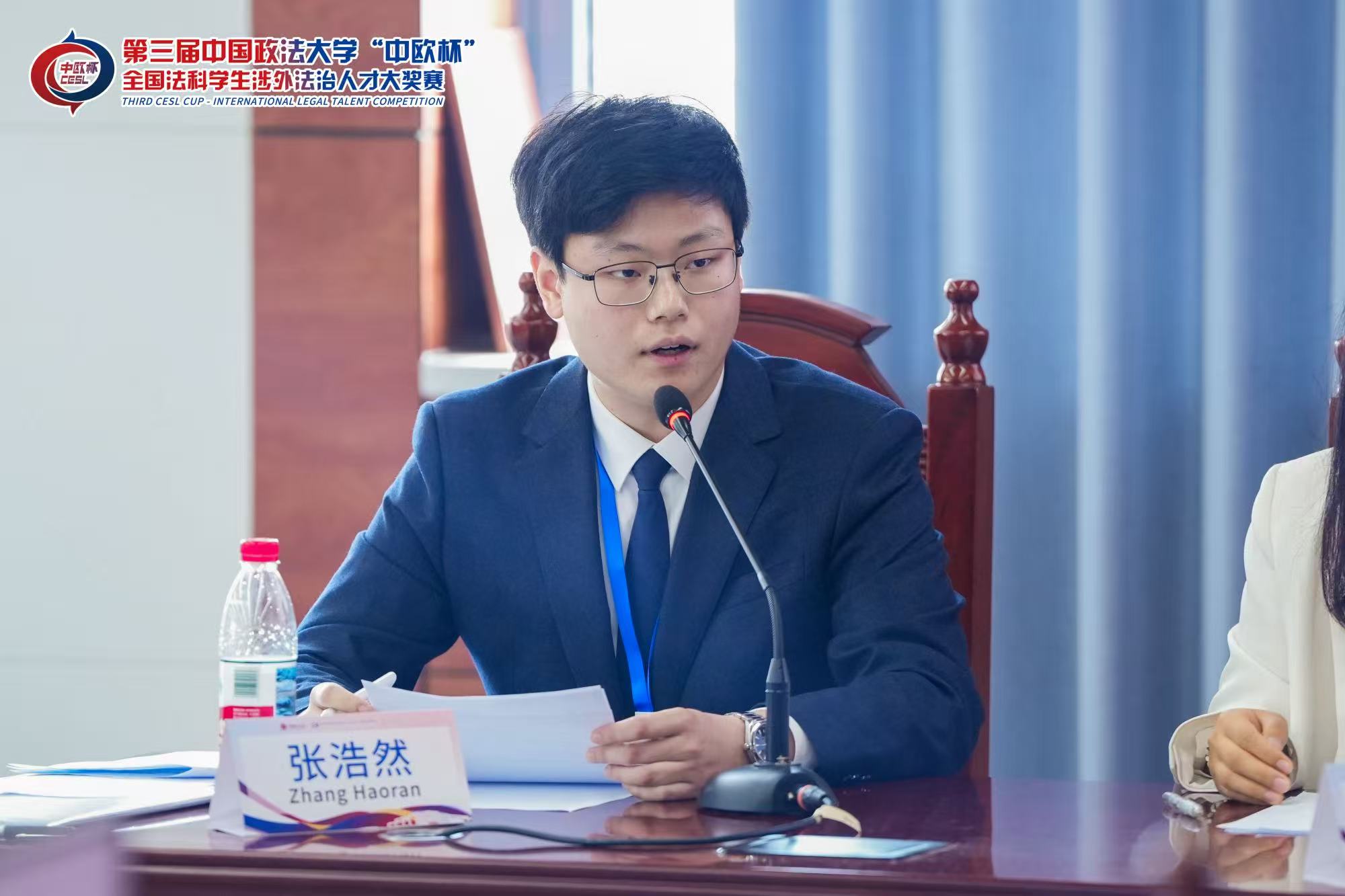 我是张浩然,来自国际关系学院法学院,非常荣幸能参加第三届“中欧杯”全国法科学生涉外法治人才大奖赛,并最终荣获“中欧杯”优秀涉外法治人才二等奖。今年是我第二次征战“中欧杯”,此前在第二届赛事中,我曾获得“涉外法治人才合规精英奖”。下面我将结合两年的“中欧杯”参赛经历,从法律英语学习经验与参赛心得两方面展开分享: