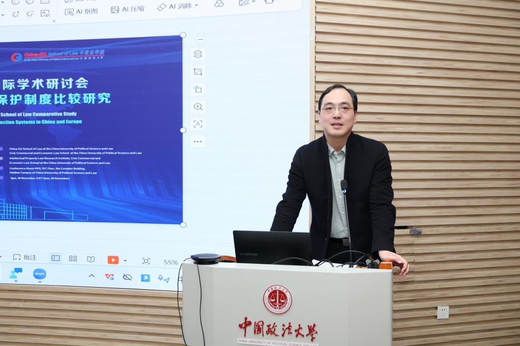 2025年11月30日,中欧法学院年度国际学术研讨会“中欧知识产权管理与保护制度比较研究”在中国政法大学海淀校区举行。会议第二单元主题为“知识产权管理的域外经验与完善路径”,由我校民商经济法学院佘力焓副教授担任主持人,中欧法学院欧方执行院长Ronald Montague Silley、中国科学院科技战略咨询研究院研究员、中国科学院大学知识产权学院副院长宋河发教授、英国杜伦大学可持续发展法与政策中心联席主任王佳副教授、北京化工大学余俊教授、以及我校民商经济法学院杨利华教授等5位专家学者作专题报告,另由北方工业大学文法学院邓恒教授进行评议。