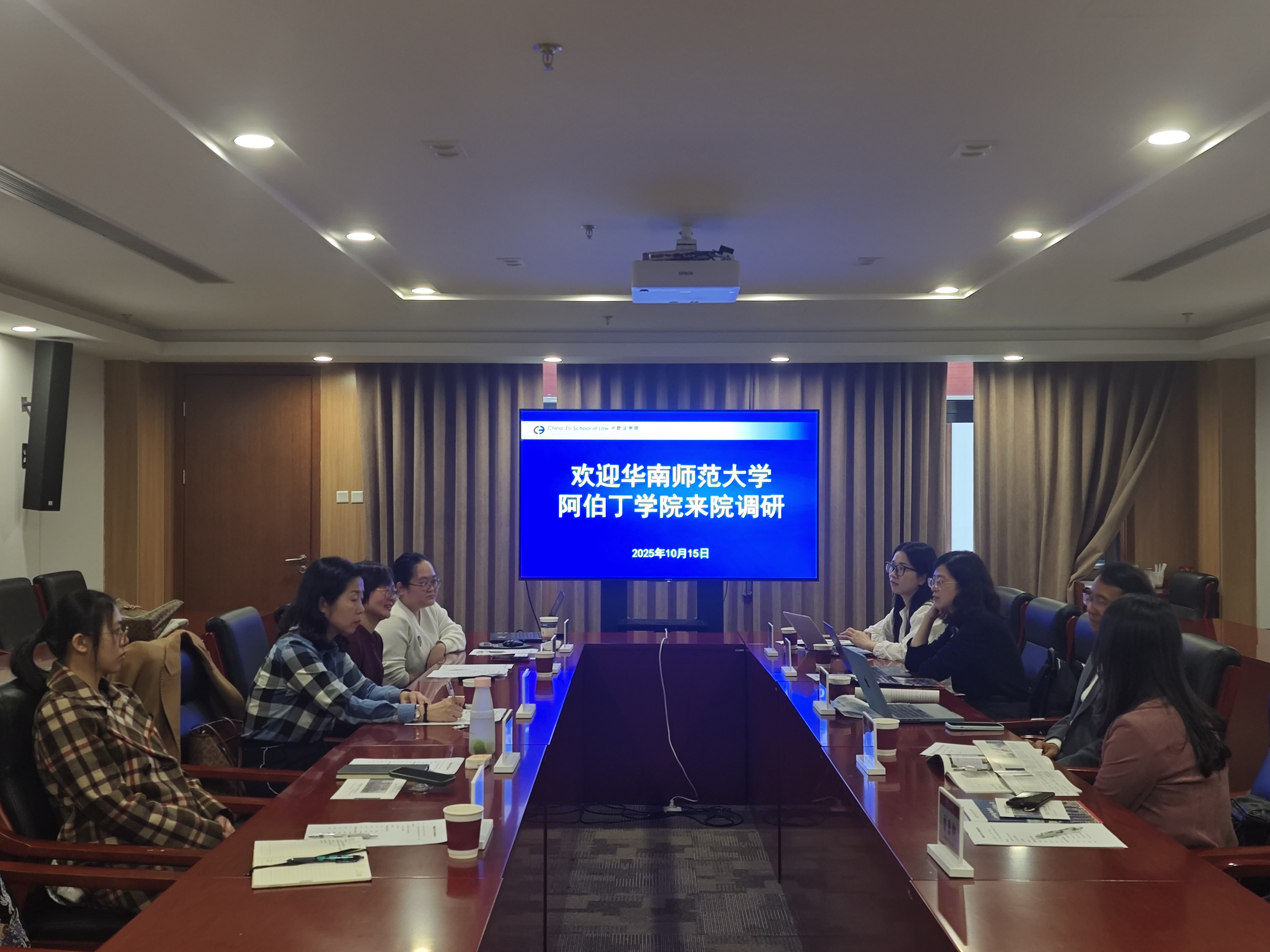 10月15日上午,华南师范大学阿伯丁数据科学与人工智能学院(以下简称“阿伯丁学院”)党委副书记李丹凌、副院长沈映珊、副院长柴少明、外事副主管胡一婷一行四人到中欧法学院调研。中欧法学院党委副书记兼副院长何欣、教务办公室主任马安娜、辅导员李爽、外事与培训办公室副主任陈颖芳、教务办公室吴素跃等参加座谈。