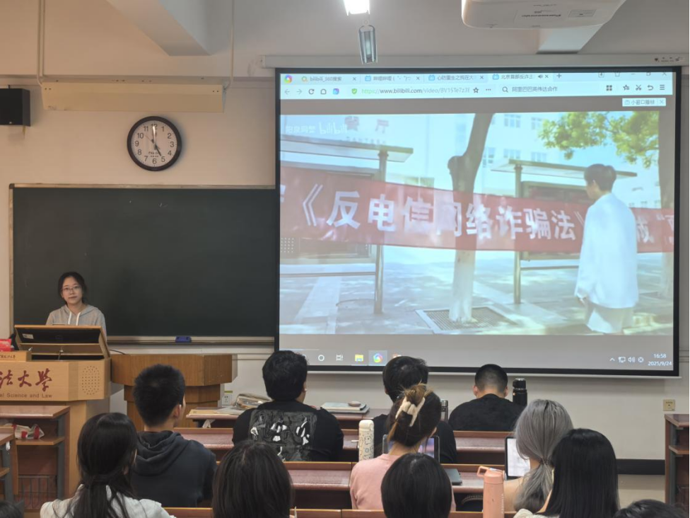 观影结束后,班长吕秋子君结合警示片案例,系统梳理了防范诈骗的“三不一多”原则——不轻信、不透露、不转账、多核实,并重点强调了保护个人信息、核实对方身份的重要性。
